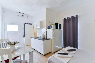 Ferienwohnung bietet Platz für 4 Gäste. Die Betten sind in Schlafzimmern, die es 1 gibt, und in Wohnzimmer, innerhalb einer Gesamtfläche von 36m2, angeordnet. Die Gäste haben eine eigene Terrasse zur Verfügung, auf der sie in warmen Sommernächten genießen können. Es ist erlaubt, Speisen auf dem Gemeinschafts-Grill vorzubereiten.