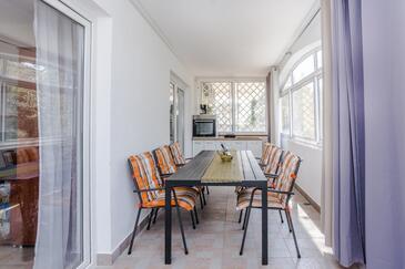 Ferienwohnung bietet Platz für 6 Gäste. Die Betten sind in Schlafzimmern, die es 2 gibt, und in Wohnzimmer, innerhalb einer Gesamtfläche von 48m2, angeordnet. Die Gäste haben eine eigene Terrasse zur Verfügung, auf der sie in warmen Sommernächten genießen können. Es ist erlaubt, Speisen auf dem Gemeinschafts-Grill vorzubereiten. In der Unterkunftseinheit besteht die Möglichkeit des Mitbringens von Haustieren gegen Aufpreis.