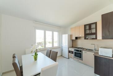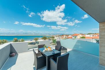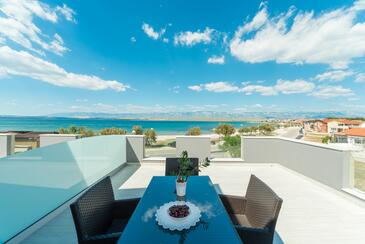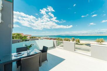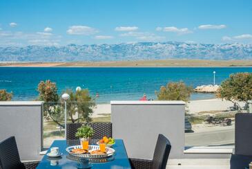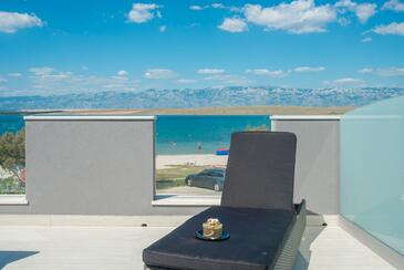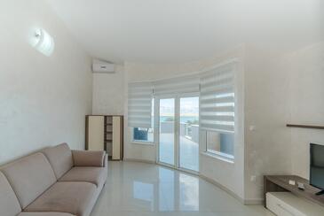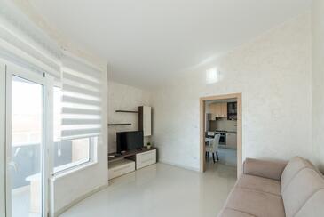 Ferienwohnung bietet Platz für 4 Gäste. Die Betten sind in Schlafzimmern, die es 1 gibt, und in Wohnzimmer, innerhalb einer Gesamtfläche von 42m2, angeordnet. Die Gäste haben eine eigene Terrasse zur Verfügung, auf der sie in warmen Sommernächten genießen können. Das Apartment bietet Meerblick. Es ist erlaubt, Speisen auf dem Gemeinschafts-Grill vorzubereiten.