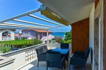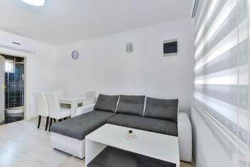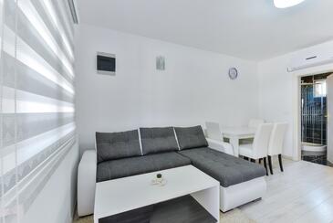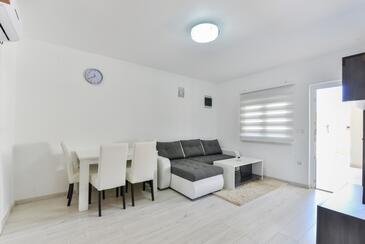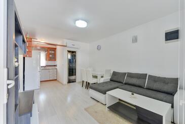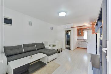 Ferienwohnung bietet Platz für 6 Gäste. Die Betten sind in Schlafzimmern, die es 2 gibt, und in Wohnzimmer, innerhalb einer Gesamtfläche von 47m2, angeordnet. Die Gäste haben eine eigene Terrasse zur Verfügung, auf der sie in warmen Sommernächten genießen können. Es ist erlaubt, Speisen auf dem Gemeinschafts-Grill vorzubereiten.