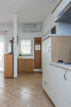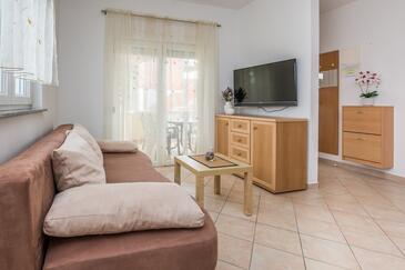 Ferienwohnung bietet Platz für 4 Gäste. Die Betten sind in Schlafzimmern, die es 1 gibt, und in Wohnzimmer, innerhalb einer Gesamtfläche von 42m2, angeordnet. Die Gäste haben eine eigene Terrasse zur Verfügung, auf der sie in warmen Sommernächten genießen können. Es ist erlaubt, Speisen auf dem Gemeinschafts-Grill vorzubereiten.