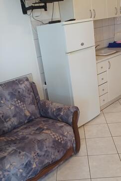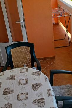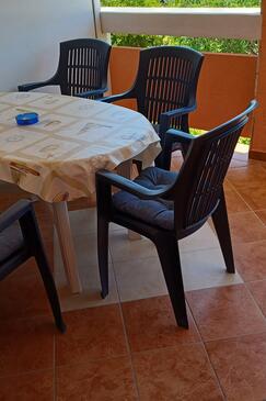 Ferienwohnung bietet Platz für 6 Gäste. Die Betten sind in Schlafzimmern, die es 2 gibt, und in Esszimmer, innerhalb einer Gesamtfläche von 40m2, angeordnet. Die Gäste haben eine eigene Terrasse zur Verfügung, auf der sie in warmen Sommernächten genießen können. Es ist erlaubt, Speisen auf dem Gemeinschafts-Grill vorzubereiten.