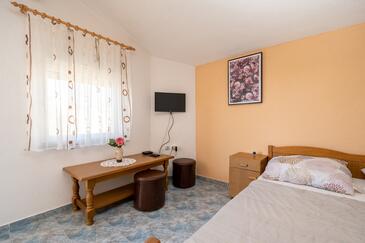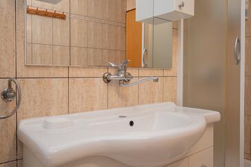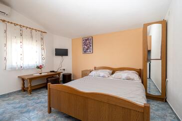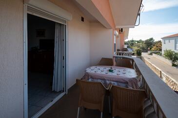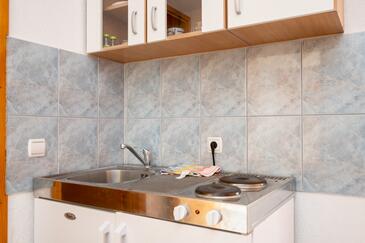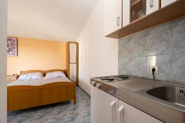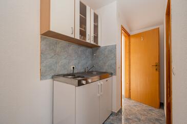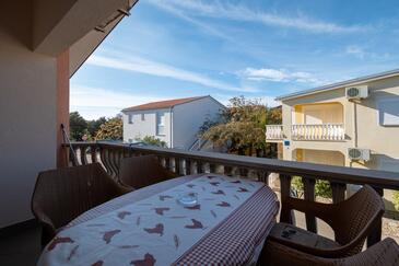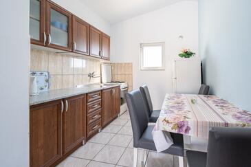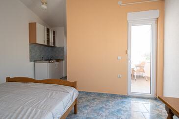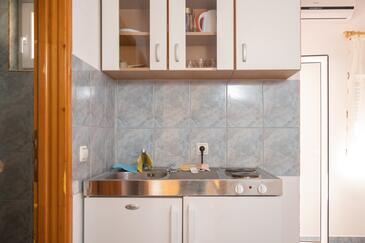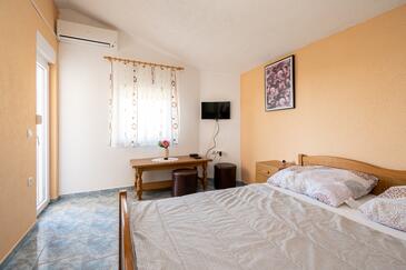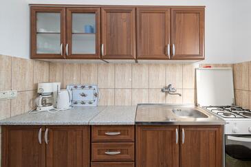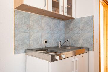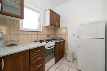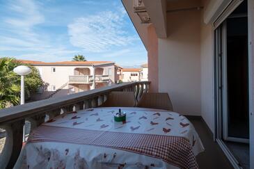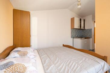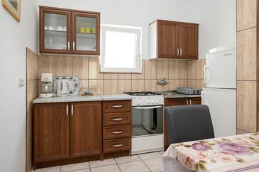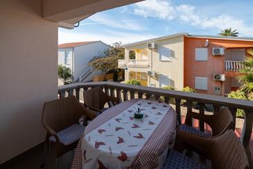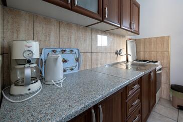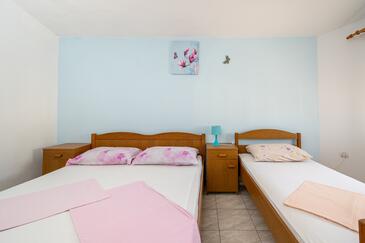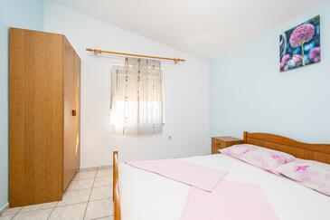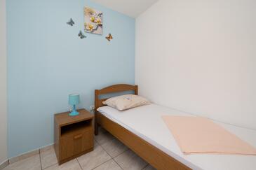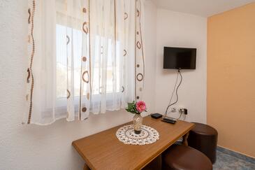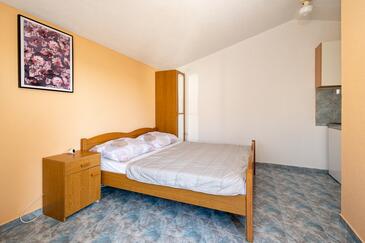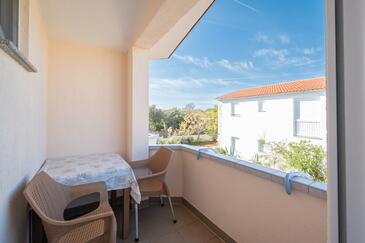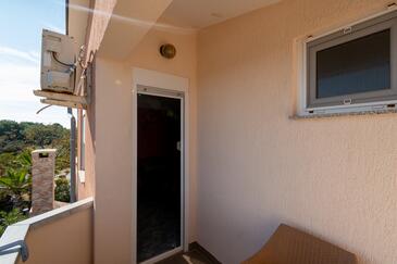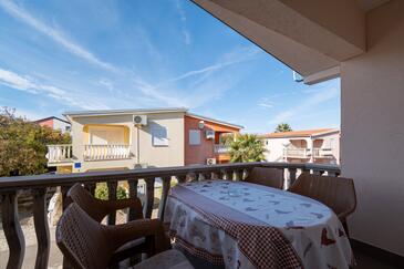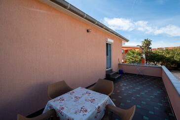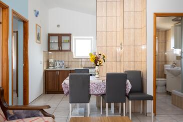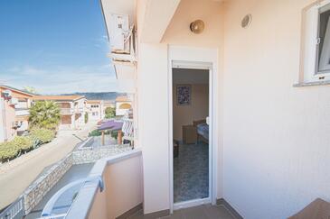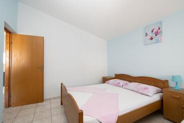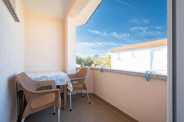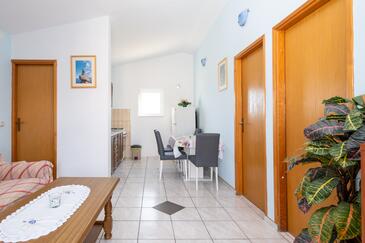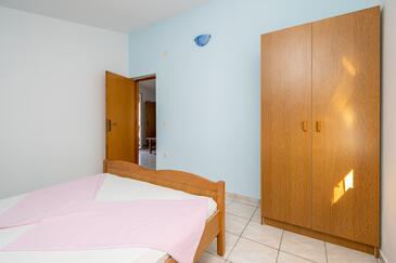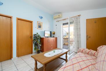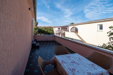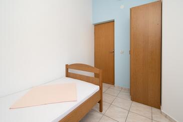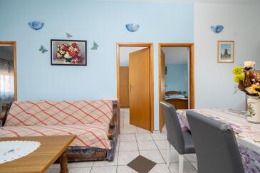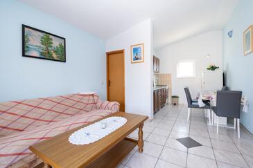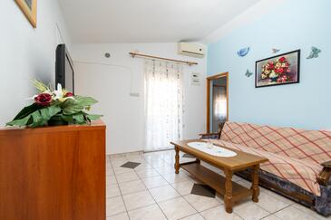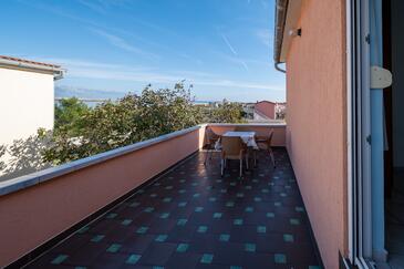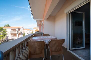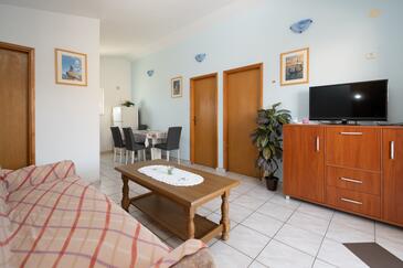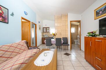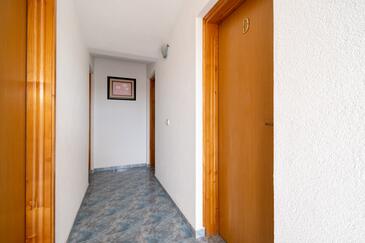 Ferienwohnung bietet Platz für 5 Gäste. Die Betten sind in Schlafzimmern, die es 3 gibt, innerhalb einer Gesamtfläche von 50m2, angeordnet. Die Gäste haben eine eigene Terrasse zur Verfügung, auf der sie in warmen Sommernächten genießen können. Das Apartment bietet Meerblick. Es ist erlaubt, Speisen auf dem Gemeinschafts-Grill vorzubereiten.