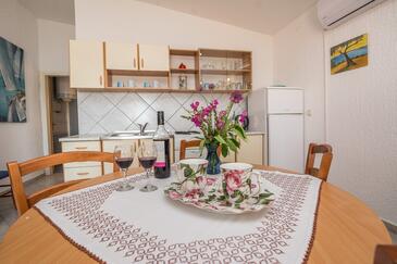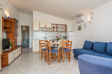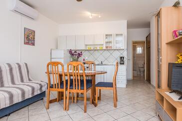 Ferienwohnung bietet Platz für 4 Gäste. Die Betten sind in Schlafzimmern, die es 1 gibt, und in Wohnzimmer, innerhalb einer Gesamtfläche von 32m2, angeordnet. Die Gäste haben eine eigene Terrasse zur Verfügung, auf der sie in warmen Sommernächten genießen können. Das Apartment bietet Meerblick. Es ist erlaubt, Speisen auf dem Gemeinschafts-Grill vorzubereiten.