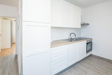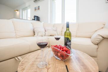 Ferienwohnung bietet Platz für 6 Gäste. Die Betten sind in Schlafzimmern, die es 2 gibt, und in Wohnzimmer, innerhalb einer Gesamtfläche von 53m2, angeordnet. Die Gäste haben eine eigene Terrasse zur Verfügung, auf der sie in warmen Sommernächten genießen können. Es ist erlaubt, Speisen auf dem Gemeinschafts-Grill vorzubereiten.