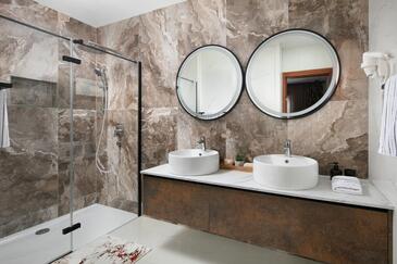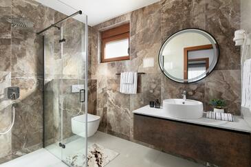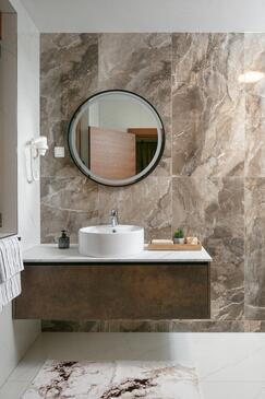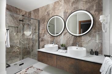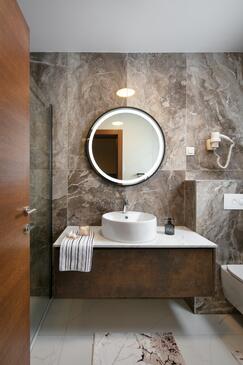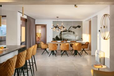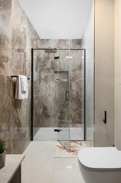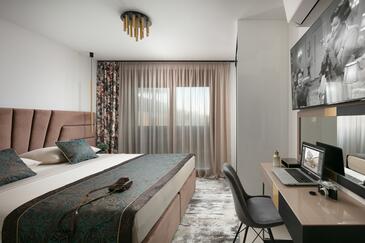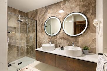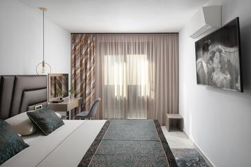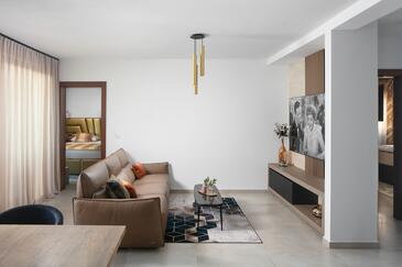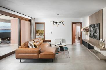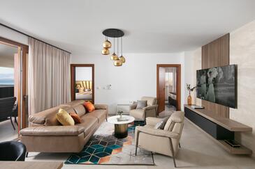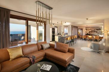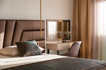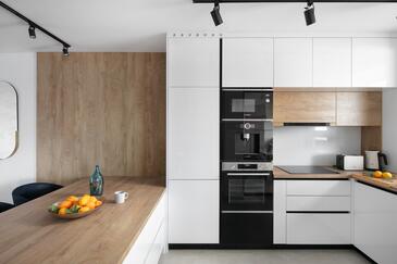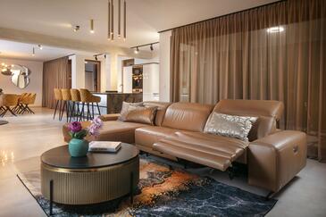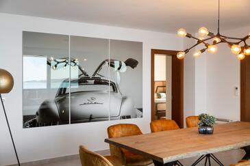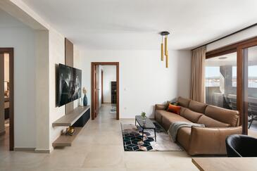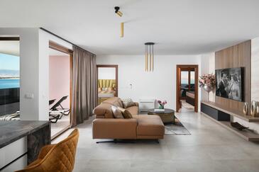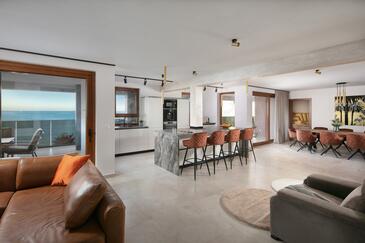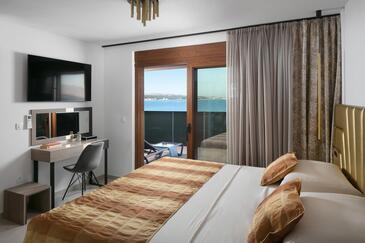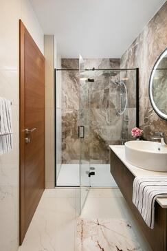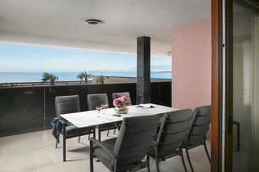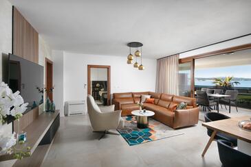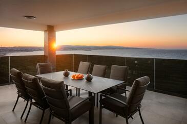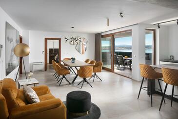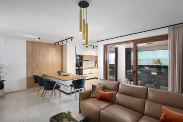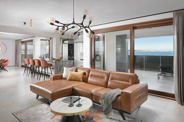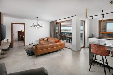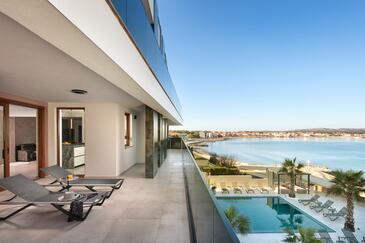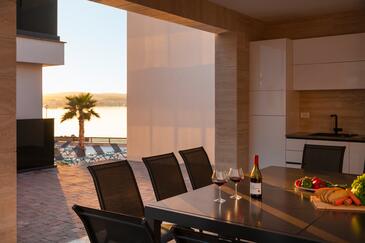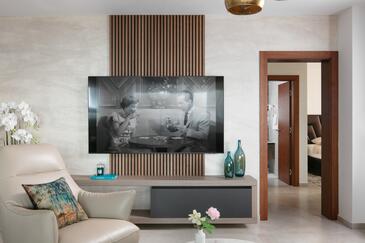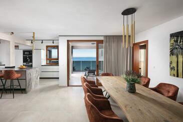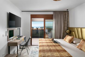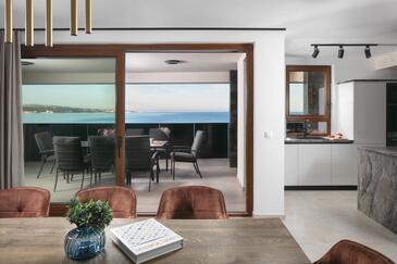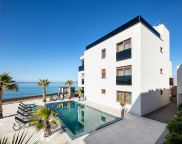 Ferienwohnung bietet Platz für 4 Gäste. Die Betten sind in Schlafzimmern, die es 2 gibt, innerhalb einer Gesamtfläche von 61m2, angeordnet. Die Gäste haben eine eigene Terrasse zur Verfügung, auf der sie in warmen Sommernächten genießen können. Das Apartment bietet Meerblick. Es ist erlaubt, Speisen auf dem Gemeinschafts-Grill vorzubereiten. Während ihres Aufenthalts können Gäste das gemeinsam zur Nutzung stehende Schwimmbad benutzen. In der gebuchten Unterkunftseinheit zahlt man am Ort ein Depositum ( der Preis ist an der Internetseite angeführt ).