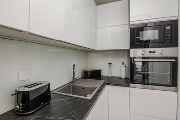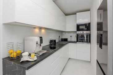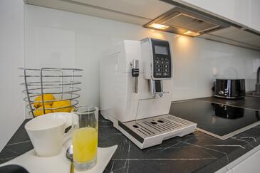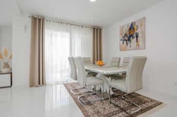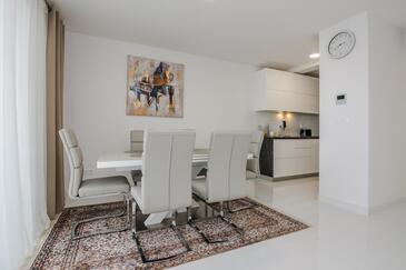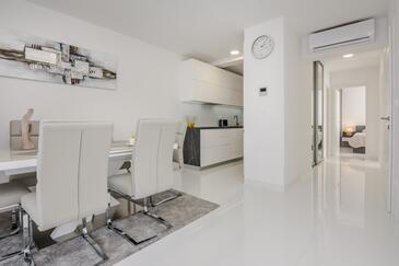 Ferienwohnung bietet Platz für 6 Gäste. Die Betten sind in Schlafzimmern, die es 2 gibt, und in Wohnzimmer, innerhalb einer Gesamtfläche von 55m2, angeordnet. Die Gäste haben eine eigene Terrasse zur Verfügung, auf der sie in warmen Sommernächten genießen können. Es ist erlaubt, Speisen auf dem Gemeinschafts-Grill vorzubereiten.