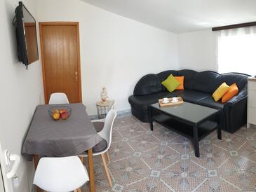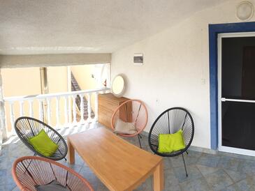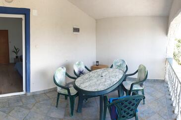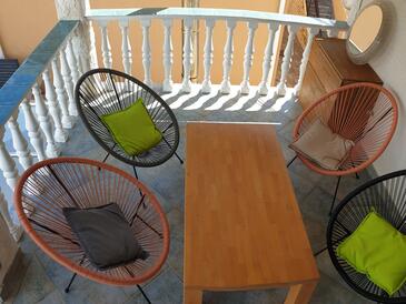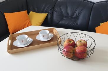 Ferienwohnung bietet Platz für 4 Gäste. Die Betten sind in Schlafzimmern, die es 1 gibt, und in Wohnzimmer, innerhalb einer Gesamtfläche von 32m2, angeordnet. Die Gäste haben eine eigene Terrasse zur Verfügung, auf der sie in warmen Sommernächten genießen können. Das Apartment bietet Meerblick. Es ist erlaubt, Speisen auf dem Gemeinschafts-Grill vorzubereiten.