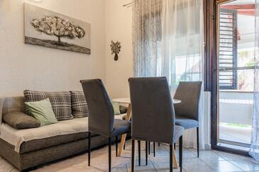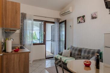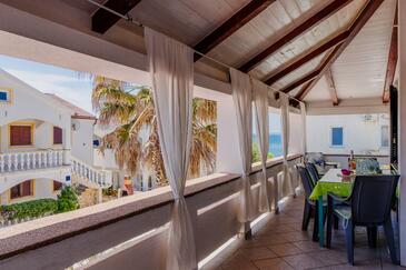 Ferienwohnung bietet Platz für 4 Gäste. Die Betten sind in Schlafzimmern, die es 1 gibt, und in Esszimmer, innerhalb einer Gesamtfläche von 25m2, angeordnet. Die Gäste haben eine eigene Terrasse zur Verfügung, auf der sie in warmen Sommernächten genießen können. Das Apartment bietet Meerblick. Es ist erlaubt, Speisen auf dem Gemeinschafts-Grill vorzubereiten.