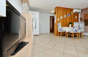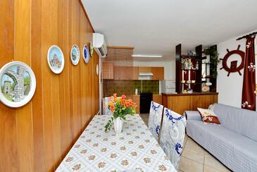 Ferienwohnung bietet Platz für 6 Gäste. Die Betten sind in Schlafzimmern, die es 2 gibt, und in Esszimmer, innerhalb einer Gesamtfläche von 55m2, angeordnet. Die Gäste haben eine eigene Terrasse zur Verfügung, auf der sie in warmen Sommernächten genießen können. Es ist erlaubt, Speisen auf dem Gemeinschafts-Grill vorzubereiten. In der Unterkunftseinheit besteht die Möglichkeit des Mitbringens von Haustieren gegen Aufpreis. In der gebuchten Unterkunftseinheit zahlt man am Ort ein Depositum ( der Preis ist an der Internetseite angeführt ).