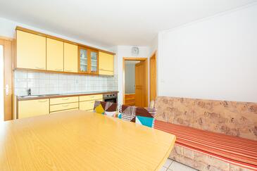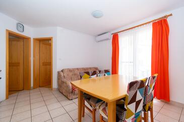 Ferienwohnung bietet Platz für 5 Gäste. Die Betten sind in Schlafzimmern, die es 2 gibt, und in Esszimmer, innerhalb einer Gesamtfläche von 54m2, angeordnet. Die Gäste haben einen eigenen Balkon zur Verfügung, auf der sie in warmen Sommernächten genießen können. Das Apartment bietet Meerblick. Es ist erlaubt, Speisen auf dem Gemeinschafts-Grill vorzubereiten.