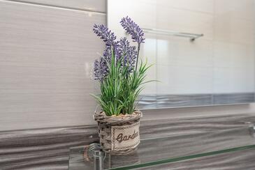 Ferienwohnung bietet Platz für 6 Gäste. Die Betten sind in Schlafzimmern, die es 3 gibt, innerhalb einer Gesamtfläche von 69m2, angeordnet. Die Gäste haben eine eigene Terrasse zur Verfügung, auf der sie in warmen Sommernächten genießen können. Das Apartment bietet Meerblick. Es ist erlaubt, Speisen auf dem Gemeinschafts-Grill vorzubereiten. In der gebuchten Unterkunftseinheit zahlt man am Ort ein Depositum ( der Preis ist an der Internetseite angeführt ).