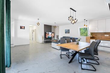 Haus bietet Platz für 6 Gäste. Die Betten sind in Schlafzimmern, die es 3 gibt, innerhalb einer Gesamtfläche von 125m2, angeordnet. Die Gäste haben eine eigene Terrasse zur Verfügung, auf der sie in warmen Sommernächten genießen können. Für vollen Genuss und Entspannung gibt es einen privaten Grill für Gäste dieser Unterkunft. Während ihres Aufenthalts können Gäste das gemeinsam zur Nutzung stehende Schwimmbad benutzen.
