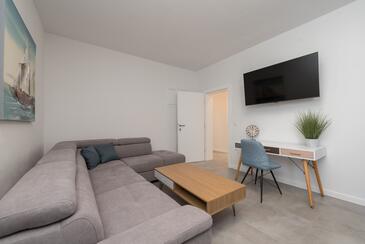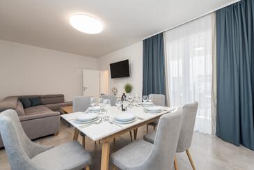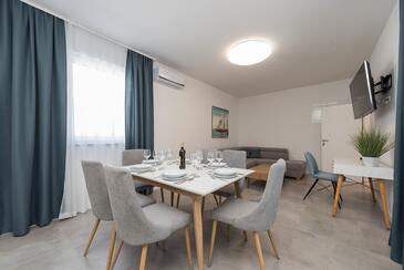 Haus bietet Platz für 6 Gäste. Die Betten sind in Schlafzimmern, die es 2 gibt, und in Wohnzimmer, innerhalb einer Gesamtfläche von 58m2, angeordnet. Die Gäste haben eine eigene Terrasse zur Verfügung, auf der sie in warmen Sommernächten genießen können. Es ist erlaubt, Speisen auf dem Gemeinschafts-Grill vorzubereiten. Während ihres Aufenthalts können sich Gäste im privaten Schwimmbad entspannen. In der gebuchten Unterkunftseinheit zahlt man am Ort ein Depositum ( der Preis ist an der Internetseite angeführt ).