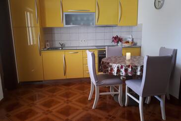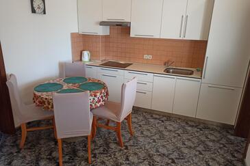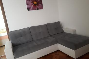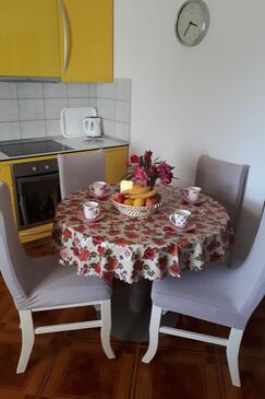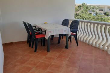 Ferienwohnung bietet Platz für 5 Gäste. Die Betten sind in Schlafzimmern, die es 2 gibt, und in Wohnzimmer, innerhalb einer Gesamtfläche von 51m2, angeordnet. Die Gäste haben eine eigene Terrasse zur Verfügung, auf der sie in warmen Sommernächten genießen können. Es ist erlaubt, Speisen auf dem Gemeinschafts-Grill vorzubereiten.