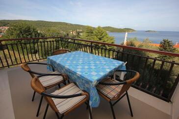 Ferienwohnung bietet Platz für 6 Gäste. Die Betten sind in Schlafzimmern, die es 2 gibt, und in Wohnzimmer, innerhalb einer Gesamtfläche von 57m2, angeordnet. Die Gäste haben eine eigene Terrasse zur Verfügung, auf der sie in warmen Sommernächten genießen können. Das Apartment bietet Meerblick. Es ist erlaubt, Speisen auf dem Gemeinschafts-Grill vorzubereiten. In der Unterkunftseinheit besteht die Möglichkeit des Mitbringens von Haustieren gegen Aufpreis.
