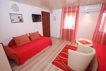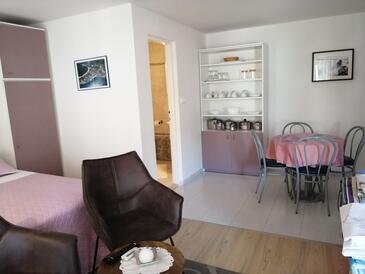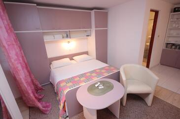 Studio bietet Platz für 2 Gäste. Die Betten sind in Schlafzimmern, die es 1 gibt, innerhalb einer Gesamtfläche von 26m2, angeordnet. Die Gäste haben eine eigene Terrasse zur Verfügung, auf der sie in warmen Sommernächten genießen können. Das Studio-Apartment bietet Meerblick. Es ist erlaubt, Speisen auf dem Gemeinschafts-Grill vorzubereiten. In der Unterkunftseinheit besteht die Möglichkeit des Mitbringens von Haustieren gegen Aufpreis.