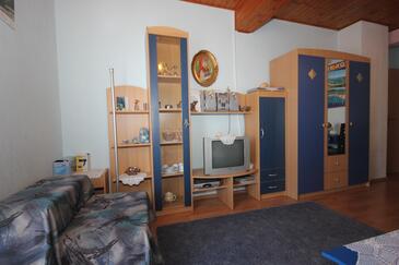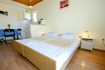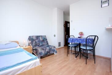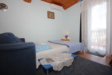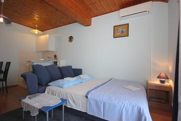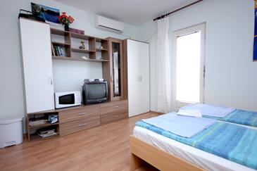 Ferienwohnung bietet Platz für 4 Gäste. Die Betten sind in Schlafzimmern, die es 1 gibt, und in Wohnzimmer, innerhalb einer Gesamtfläche von 36m2, angeordnet. Die Gäste haben einen eigenen Balkon zur Verfügung, auf der sie in warmen Sommernächten genießen können. Das Apartment bietet Meerblick. Es ist erlaubt, Speisen auf dem Gemeinschafts-Grill vorzubereiten.