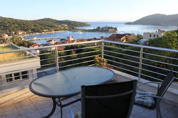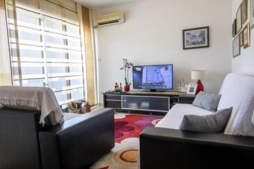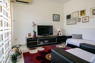 Ferienwohnung bietet Platz für 2 Gäste. Die Betten sind in Schlafzimmern, die es 1 gibt, innerhalb einer Gesamtfläche von 50m2, angeordnet. Die Gäste haben eine eigene Terrasse zur Verfügung, auf der sie in warmen Sommernächten genießen können. Das Apartment bietet Meerblick. Es ist erlaubt, Speisen auf dem Gemeinschafts-Grill vorzubereiten.