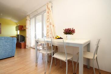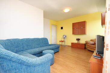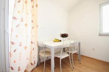Ferienwohnung bietet Platz für 4 Gäste. Die Betten sind in Schlafzimmern, die es 2 gibt, innerhalb einer Gesamtfläche von 49m2, angeordnet. Die Gäste haben eine eigene Terrasse zur Verfügung, auf der sie in warmen Sommernächten genießen können. Das Apartment bietet Meerblick. Es ist erlaubt, Speisen auf dem Gemeinschafts-Grill vorzubereiten.