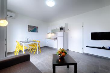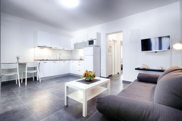 Ferienwohnung bietet Platz für 2 Gäste. Die Betten sind in Schlafzimmern, die es 1 gibt, innerhalb einer Gesamtfläche von 38m2, angeordnet. Die Gäste haben eine eigene Terrasse zur Verfügung, auf der sie in warmen Sommernächten genießen können.