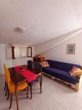 Ferienwohnung bietet Platz für 4 Gäste. Die Betten sind in Schlafzimmern, die es 2 gibt, innerhalb einer Gesamtfläche von 60m2, angeordnet. Die Gäste haben eine eigene Terrasse zur Verfügung, auf der sie in warmen Sommernächten genießen können. Das Apartment bietet Meerblick. Für vollen Genuss und Entspannung gibt es einen privaten Grill für Gäste dieser Unterkunft.