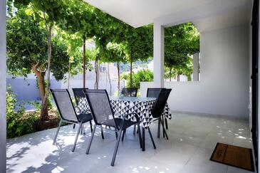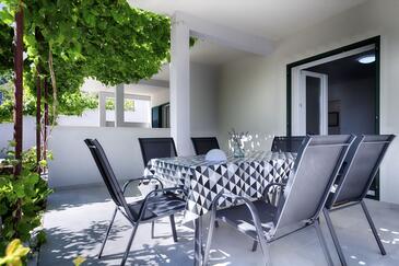Ferienwohnung bietet Platz für 4 Gäste. Die Betten sind in Schlafzimmern, die es 2 gibt, innerhalb einer Gesamtfläche von 47m2, angeordnet. Die Gäste haben eine eigene Terrasse zur Verfügung, auf der sie in warmen Sommernächten genießen können. Für vollen Genuss und Entspannung gibt es einen privaten Grill für Gäste dieser Unterkunft.