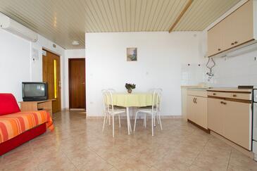 Ferienwohnung bietet Platz für 4 Gäste. Die Betten sind in Schlafzimmern, die es 1 gibt, und in Wohnzimmer, innerhalb einer Gesamtfläche von 36m2, angeordnet. Die Gäste haben eine eigene Terrasse zur Verfügung, auf der sie in warmen Sommernächten genießen können. Das Apartment bietet Meerblick.