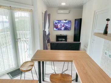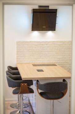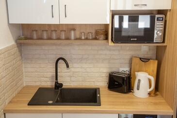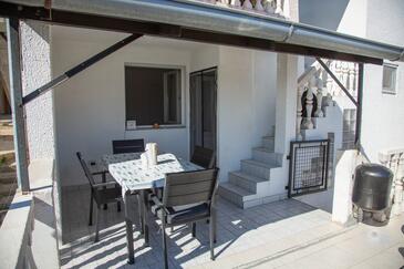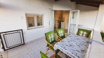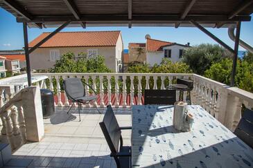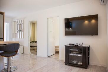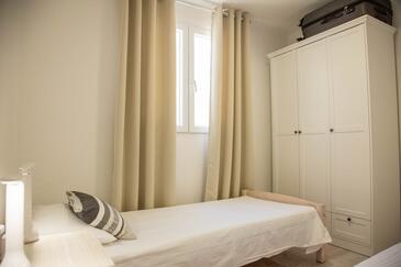 Ferienwohnung bietet Platz für 4 Gäste. Die Betten sind in Schlafzimmern, die es 2 gibt, innerhalb einer Gesamtfläche von 37m2, angeordnet. Die Gäste haben eine eigene Terrasse zur Verfügung, auf der sie in warmen Sommernächten genießen können. Das Apartment bietet Meerblick. Es ist erlaubt, Speisen auf dem Gemeinschafts-Grill vorzubereiten.