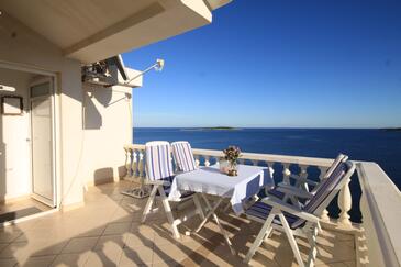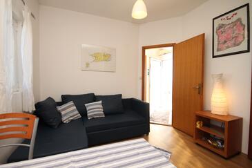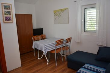 Ferienwohnung bietet Platz für 4 Gäste. Die Betten sind in Schlafzimmern, die es 2 gibt, innerhalb einer Gesamtfläche von 35m2, angeordnet. Die Gäste haben eine eigene Terrasse zur Verfügung, auf der sie in warmen Sommernächten genießen können. Das Apartment bietet Meerblick. Es ist erlaubt, Speisen auf dem Gemeinschafts-Grill vorzubereiten. In der Unterkunftseinheit besteht die Möglichkeit des Mitbringens von Haustieren, und die Dienstleistung ist im Preis der Unterkunft enthalten.