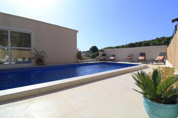 Haus bietet Platz für 8 Gäste. Die Betten sind in Schlafzimmern, die es 4 gibt, innerhalb einer Gesamtfläche von 93m2, angeordnet. Die Gäste haben eine eigene Terrasse zur Verfügung, auf der sie in warmen Sommernächten genießen können. Es ist erlaubt, Speisen auf dem Gemeinschafts-Grill vorzubereiten. Während ihres Aufenthalts können sich Gäste im privaten Schwimmbad entspannen.