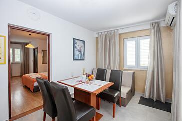 Ferienwohnung bietet Platz für 5 Gäste. Die Betten sind in Schlafzimmern, die es 2 gibt, und in Wohnzimmer, innerhalb einer Gesamtfläche von 50m2, angeordnet. Die Gäste haben eine eigene Terrasse zur Verfügung, auf der sie in warmen Sommernächten genießen können. Es ist erlaubt, Speisen auf dem Gemeinschafts-Grill vorzubereiten. In der Unterkunftseinheit besteht die Möglichkeit des Mitbringens von Haustieren gegen Aufpreis.