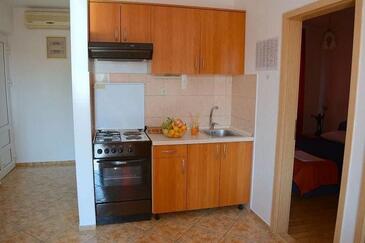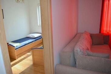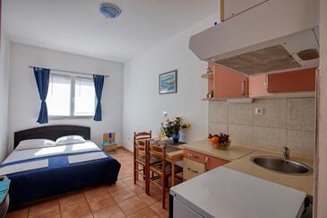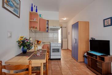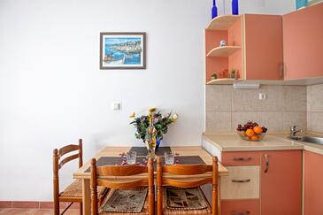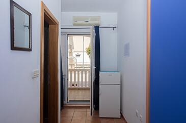 Ferienwohnung bietet Platz für 5 Gäste. Die Betten sind in Schlafzimmern, die es 2 gibt, und in Wohnzimmer, innerhalb einer Gesamtfläche von 43m2, angeordnet. Die Gäste haben eine eigene Terrasse zur Verfügung, auf der sie in warmen Sommernächten genießen können. Es ist erlaubt, Speisen auf dem Gemeinschafts-Grill vorzubereiten. In der Unterkunftseinheit besteht die Möglichkeit des Mitbringens von Haustieren gegen Aufpreis.