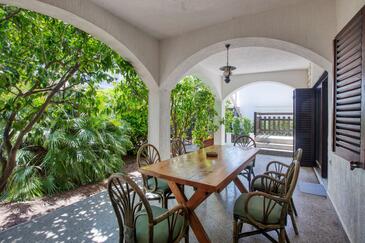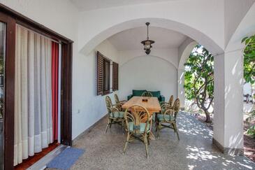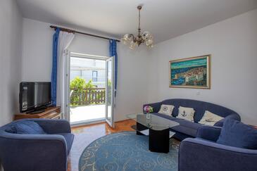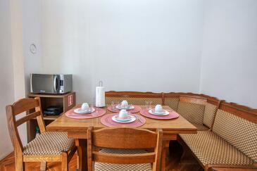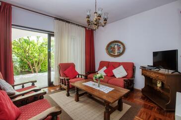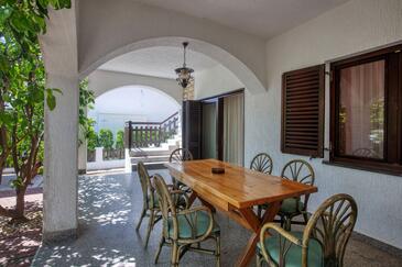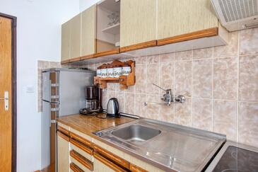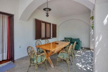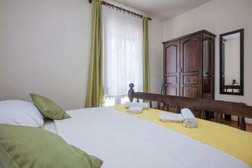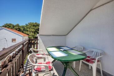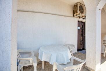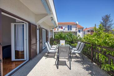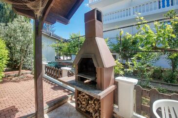Ferienwohnung bietet Platz für 4 Gäste. Die Betten sind in Schlafzimmern, die es 2 gibt, innerhalb einer Gesamtfläche von 60m2, angeordnet. Die Gäste haben eine eigene Terrasse zur Verfügung, auf der sie in warmen Sommernächten genießen können. Es ist erlaubt, Speisen auf dem Gemeinschafts-Grill vorzubereiten.