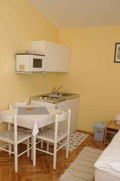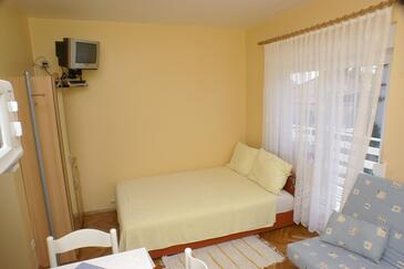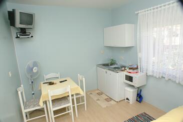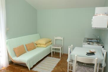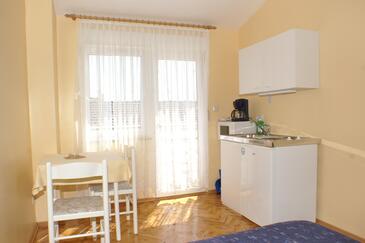 Ferienwohnung bietet Platz für 2 Gäste. Die Betten sind in Schlafzimmern, die es 1 gibt, innerhalb einer Gesamtfläche von 23m2, angeordnet. Die Gäste haben eine eigene Terrasse zur Verfügung, auf der sie in warmen Sommernächten genießen können. Es ist erlaubt, Speisen auf dem Gemeinschafts-Grill vorzubereiten.