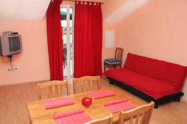 Ferienwohnung bietet Platz für 4 Gäste. Die Betten sind in Schlafzimmern, die es 2 gibt, innerhalb einer Gesamtfläche von 47m2, angeordnet. Die Gäste haben einen eigenen Balkon zur Verfügung, auf der sie in warmen Sommernächten genießen können. Es ist erlaubt, Speisen auf dem Gemeinschafts-Grill vorzubereiten.