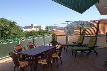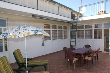 Ferienwohnung bietet Platz für 6 Gäste. Die Betten sind in Schlafzimmern, die es 3 gibt, innerhalb einer Gesamtfläche von 82m2, angeordnet. Die Gäste haben eine eigene Terrasse zur Verfügung, auf der sie in warmen Sommernächten genießen können. Das Apartment bietet Meerblick. Es ist erlaubt, Speisen auf dem Gemeinschafts-Grill vorzubereiten.