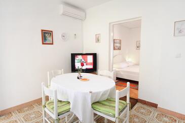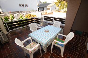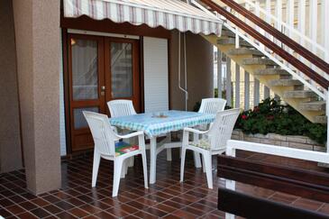 Ferienwohnung bietet Platz für 5 Gäste. Die Betten sind in Schlafzimmern, die es 2 gibt, und in Esszimmer, innerhalb einer Gesamtfläche von 45m2, angeordnet. Die Gäste haben eine eigene Terrasse zur Verfügung, auf der sie in warmen Sommernächten genießen können. Es ist erlaubt, Speisen auf dem Gemeinschafts-Grill vorzubereiten.