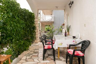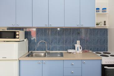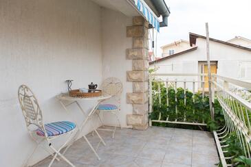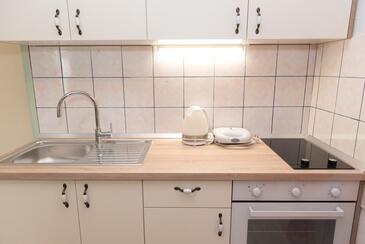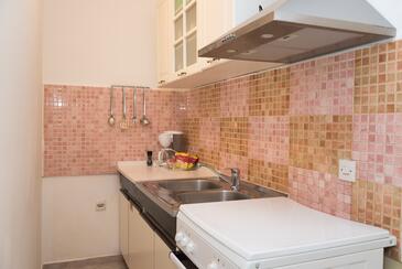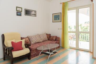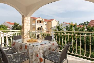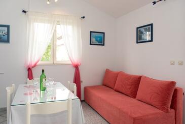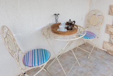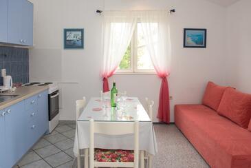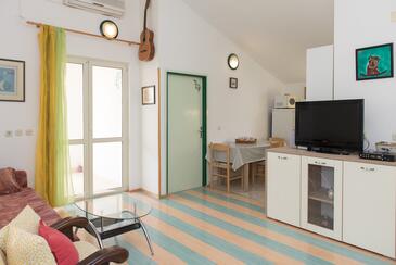 Ferienwohnung bietet Platz für 4 Gäste. Die Betten sind in Schlafzimmern, die es 2 gibt, innerhalb einer Gesamtfläche von 43m2, angeordnet. Die Gäste haben eine eigene Terrasse zur Verfügung, auf der sie in warmen Sommernächten genießen können. Es ist erlaubt, Speisen auf dem Gemeinschafts-Grill vorzubereiten.