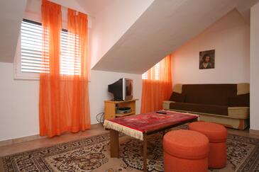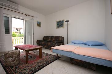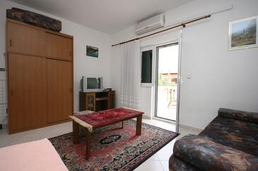 Ferienwohnung bietet Platz für 6 Gäste. Die Betten sind in Schlafzimmern, die es 2 gibt, und in Wohnzimmer, innerhalb einer Gesamtfläche von 77m2, angeordnet. Die Gäste haben eine eigene Terrasse zur Verfügung, auf der sie in warmen Sommernächten genießen können. Es ist erlaubt, Speisen auf dem Gemeinschafts-Grill vorzubereiten. Unterkunftseinheit hat Räume, die von dem Rest der Einheit abgetrennt werden.