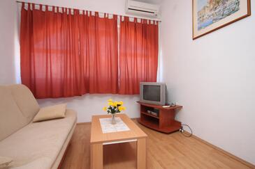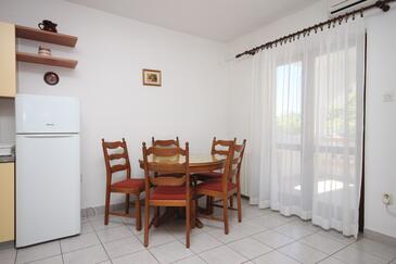 Ferienwohnung bietet Platz für 6 Gäste. Die Betten sind in Schlafzimmern, die es 3 gibt, innerhalb einer Gesamtfläche von 72m2, angeordnet. Die Gäste haben eine eigene Terrasse zur Verfügung, auf der sie in warmen Sommernächten genießen können. Es ist erlaubt, Speisen auf dem Gemeinschafts-Grill vorzubereiten.