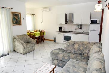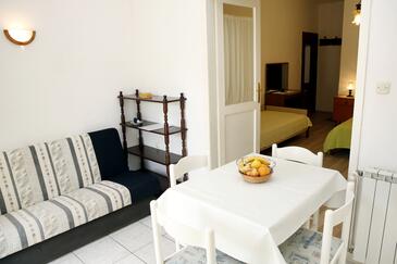 Ferienwohnung bietet Platz für 5 Gäste. Die Betten sind in Schlafzimmern, die es 2 gibt, innerhalb einer Gesamtfläche von 69m2, angeordnet. Die Gäste haben eine eigene Terrasse zur Verfügung, auf der sie in warmen Sommernächten genießen können. Es ist erlaubt, Speisen auf dem Gemeinschafts-Grill vorzubereiten. In der Unterkunftseinheit besteht die Möglichkeit des Mitbringens von Haustieren gegen Aufpreis.