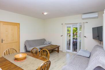 Ferienwohnung bietet Platz für 4 Gäste. Die Betten sind in Schlafzimmern, die es 1 gibt, und in Wohnzimmer, innerhalb einer Gesamtfläche von 42m2, angeordnet. Die Gäste haben einen eigenen Balkon zur Verfügung, auf der sie in warmen Sommernächten genießen können. Es ist erlaubt, Speisen auf dem Gemeinschafts-Grill vorzubereiten. In der Unterkunftseinheit besteht die Möglichkeit des Mitbringens von Haustieren, und die Dienstleistung ist im Preis der Unterkunft enthalten.