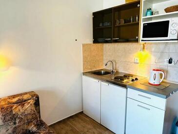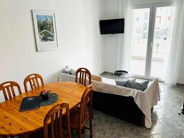 Ferienwohnung bietet Platz für 4 Gäste. Die Betten sind in Schlafzimmern, die es 2 gibt, innerhalb einer Gesamtfläche von 52m2, angeordnet. Die Gäste haben eine eigene Terrasse zur Verfügung, auf der sie in warmen Sommernächten genießen können. Es ist erlaubt, Speisen auf dem Gemeinschafts-Grill vorzubereiten.