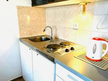 Ferienwohnung bietet Platz für 4 Gäste. Die Betten sind in Schlafzimmern, die es 2 gibt, innerhalb einer Gesamtfläche von 52m2, angeordnet. Die Gäste haben eine eigene Terrasse zur Verfügung, auf der sie in warmen Sommernächten genießen können. Es ist erlaubt, Speisen auf dem Gemeinschafts-Grill vorzubereiten.