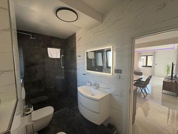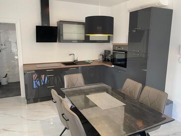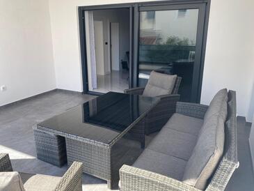 Ferienwohnung bietet Platz für 4 Gäste. Die Betten sind in Schlafzimmern, die es 2 gibt, innerhalb einer Gesamtfläche von 56m2, angeordnet. Die Gäste haben eine eigene Terrasse zur Verfügung, auf der sie in warmen Sommernächten genießen können. Es ist erlaubt, Speisen auf dem Gemeinschafts-Grill vorzubereiten.