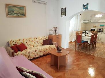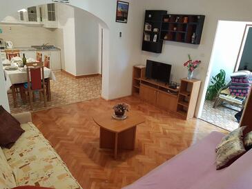 Haus bietet Platz für 6 Gäste. Die Betten sind in Schlafzimmern, die es 2 gibt, und in Wohnzimmer, innerhalb einer Gesamtfläche von 67m2, angeordnet. Die reservierte Unterkunftseinheit hat keinen Balkon und keine Terrasse.