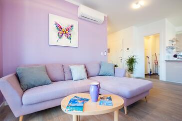 Ferienwohnung bietet Platz für 4 Gäste. Die Betten sind in Schlafzimmern, die es 2 gibt, innerhalb einer Gesamtfläche von 68m2, angeordnet. Die Gäste haben einen eigenen Balkon zur Verfügung, auf der sie in warmen Sommernächten genießen können.