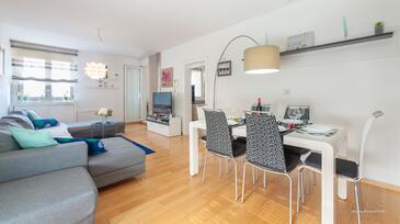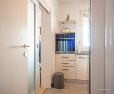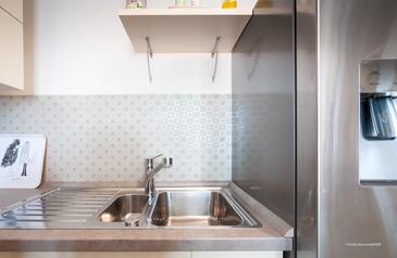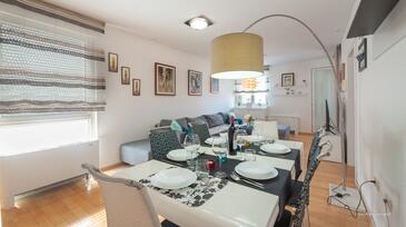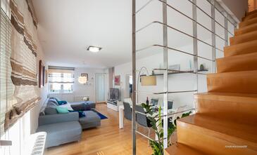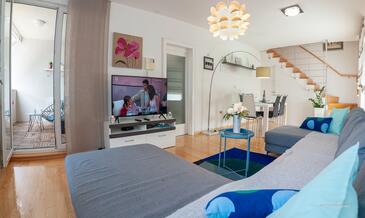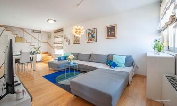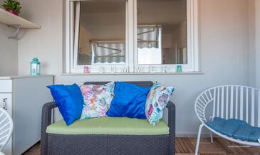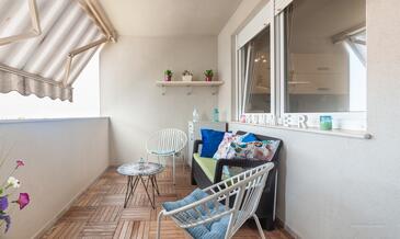 Ferienwohnung bietet Platz für 6 Gäste. Die Betten sind in Schlafzimmern, die es 3 gibt, innerhalb einer Gesamtfläche von 103m2, angeordnet. Die Gäste haben einen eigenen Balkon zur Verfügung, auf der sie in warmen Sommernächten genießen können. Das Apartment bietet Meerblick.