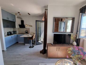 Studio bietet Platz für 2 Gäste. Die Betten sind in Wohnzimmer, innerhalb einer Gesamtfläche von 22m2, angeordnet. Die Gäste haben einen eigenen Balkon zur Verfügung, auf der sie in warmen Sommernächten genießen können. Das Studio-Apartment bietet Meerblick.